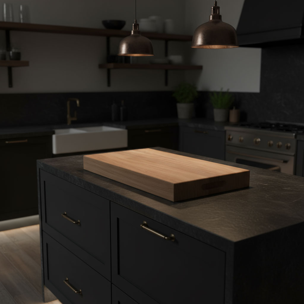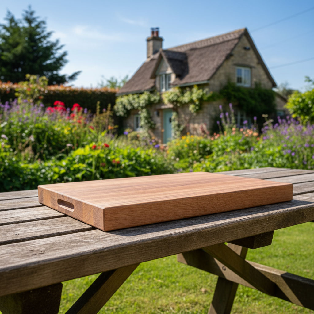 Skärbräda med handtag, spår, mått och oljad – 600x300x40mm