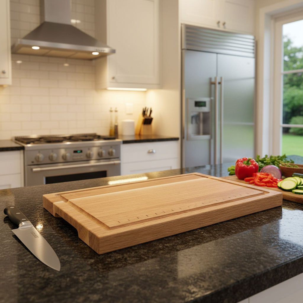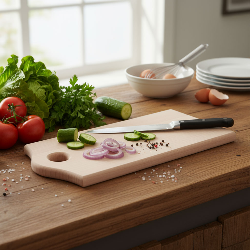 Träslaget bok är hårt och tåligt, vilket gör att brädan håller sig fin även vid frekvent användning. Den är enkel att rengöra, behaglig att arbeta med och passar lika bra till vardag som till servering. En tidlös köksdetalj som kombinerar funktion med naturlig design.