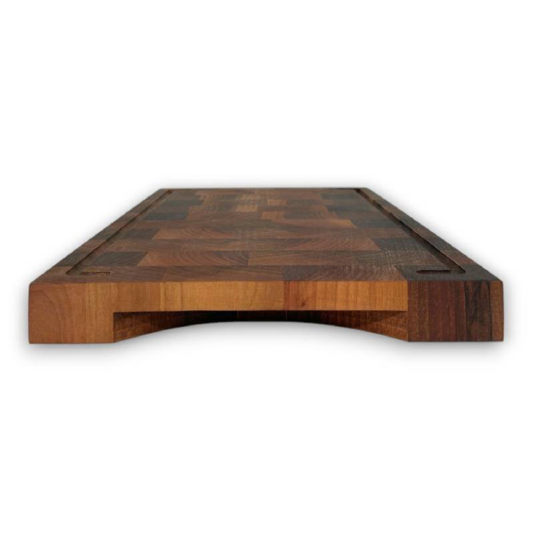 Stabil och rejäl skärbräda i ändträ av valnöt, ett slitstarkt och exklusivt material som är skonsamt mot knivens egg. Utrustad med vätskeränna för att samla upp köttsaft eller vätska vid matlagning samt urfrästa grepp på kortsidorna för enkel hantering. Den tjocka konstruktionen ger en professionell känsla och gör brädan till ett funktionellt och vackert inslag i köket.